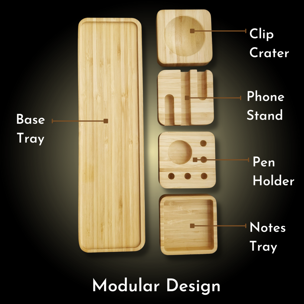 - 🔁 Modular Design 🔁: Slab’s modular design allows you to customize and arrange the compartments to fit your specific needs. All four compartments can be rearranged or removed from the base tray. The base tray itself can hold pens and other accessories enabling you only to keep the things that matter.